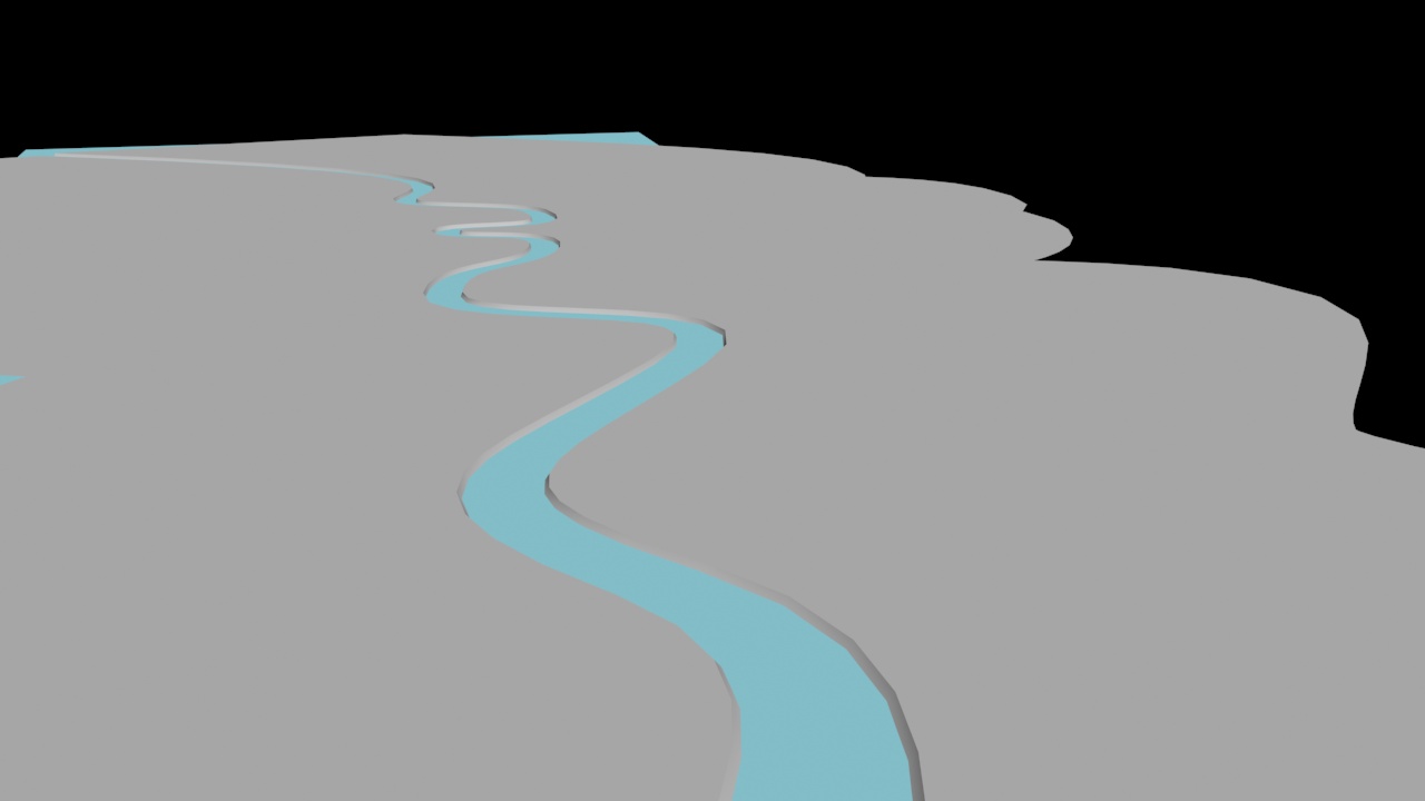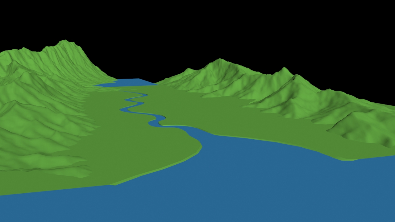 5)loft로 생성한 강의 물줄기 모델을 확인할수있습니다.