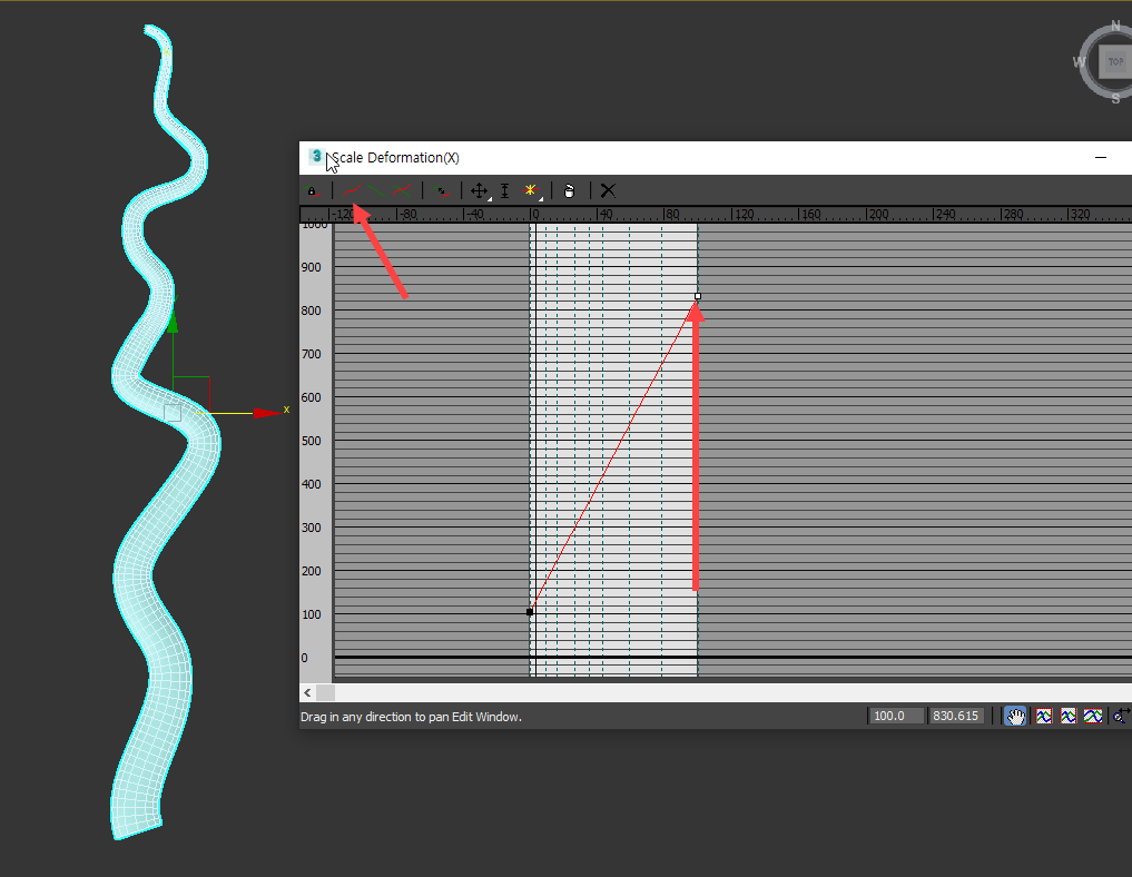 12)scale 우측의 버튼을 활성화하면 그래프 수정으로 형태가 변하는 모델을 뷰포트에서 실시간으로 확인할수있습니다.