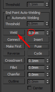 11)weld의 옵션에서 설정한 거리(0.1mm) 내에있는 버텍스들을 한개의 버텍스로 설정합니다.