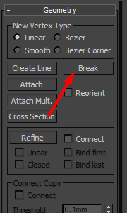 10)버텍스를 선택하고 break를 선택하면 geometry가 연속적이지않은 두개의 버텍스로 분리됩니다.