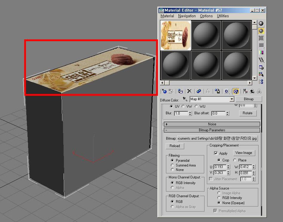 3D맥스에서 박스(육면체) 맵핑하기(다중재질과 비트맵 자르기를 사용한 방법)