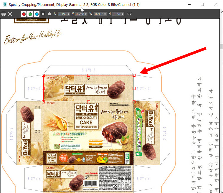 10)아래 표시한곳을 클릭 드래그해서 자르기 영역을 1번 폴리곤에 맵핑할 이미지의 영역으로 설정합니다.