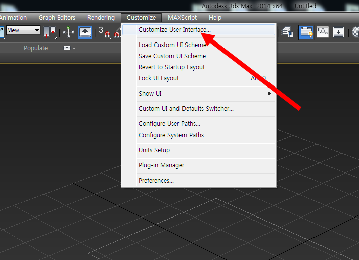 4)상단의 customize 메뉴의 customize user interface로 이동합니다.