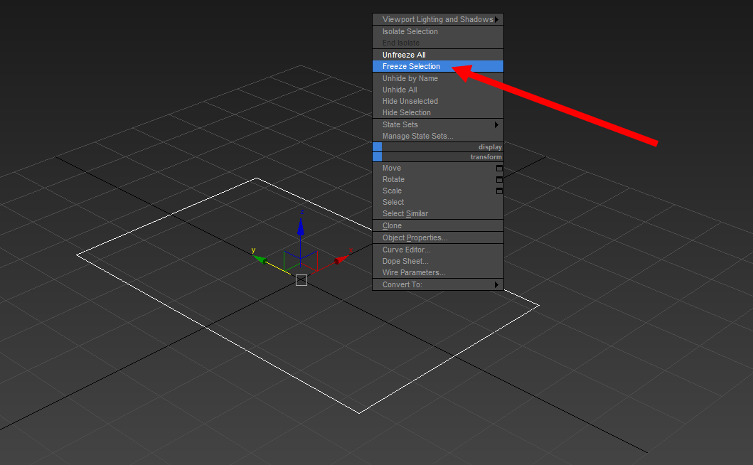 3)기본적으로 freeze selection으로 설정된 오브젝트는 뷰포트에서 회색으로 표시되며 선택할수없습니다.