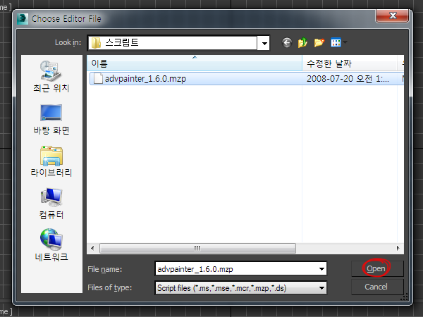 4)스트립트 파일(.mzp)를 선택하고 열기합니다.