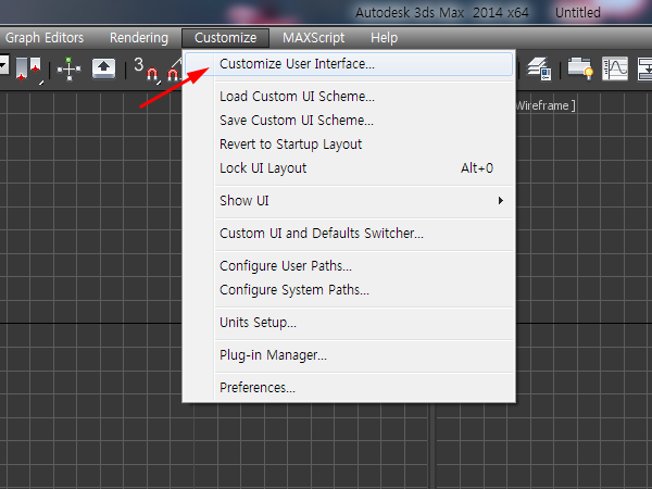 6)상단의 customize 메뉴에서 customize user interface로 이동합니다.