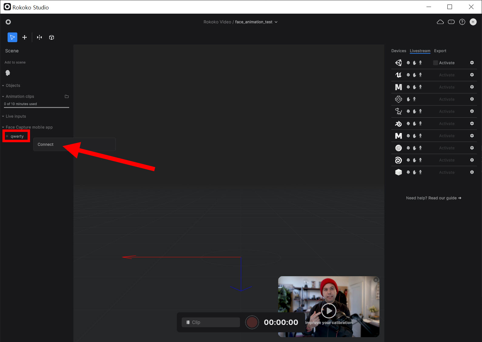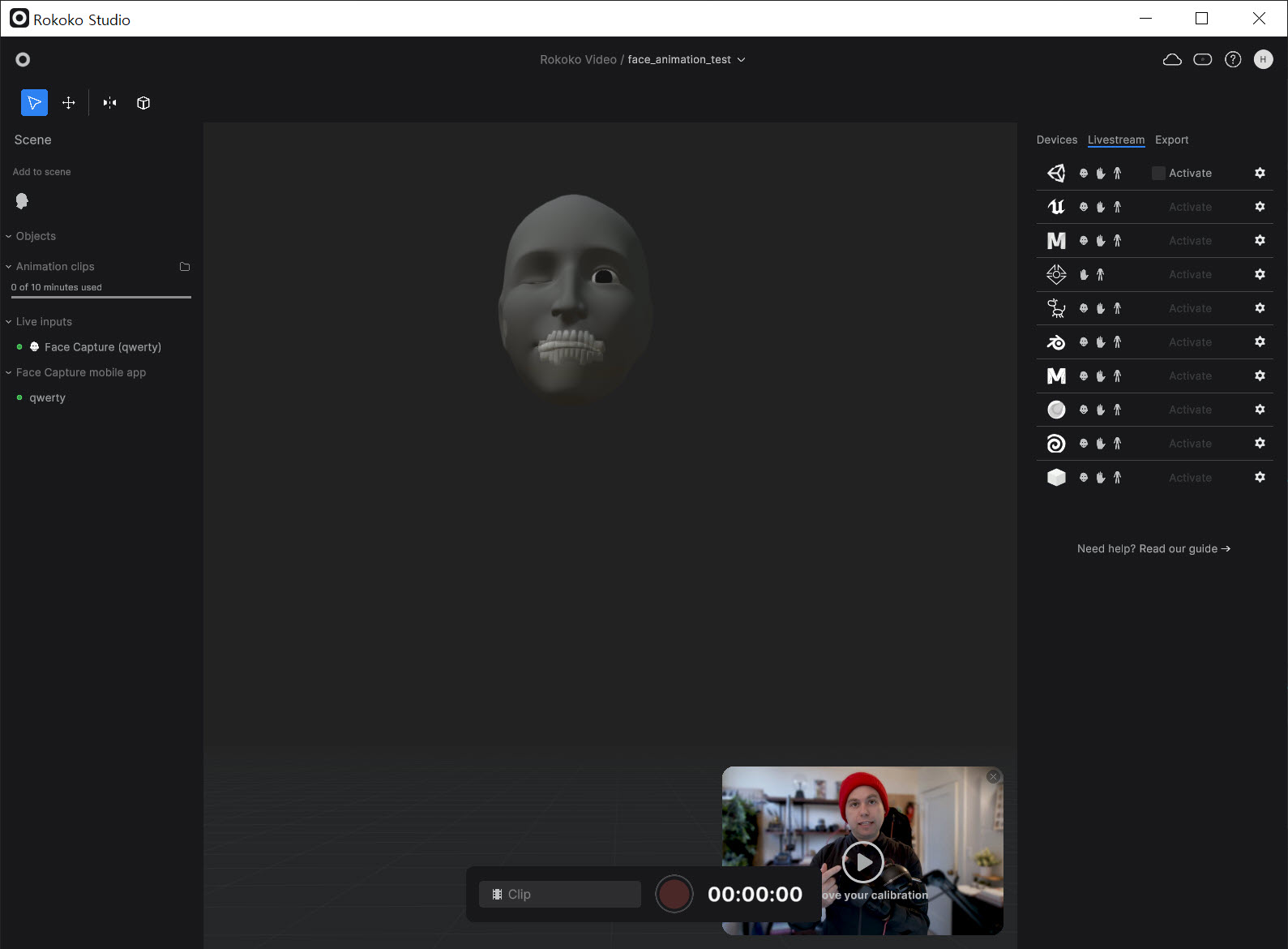 rokoko 스튜디오와 face capture 앱을 사용하여 실시간 얼굴 애니메이션 클립 만들기