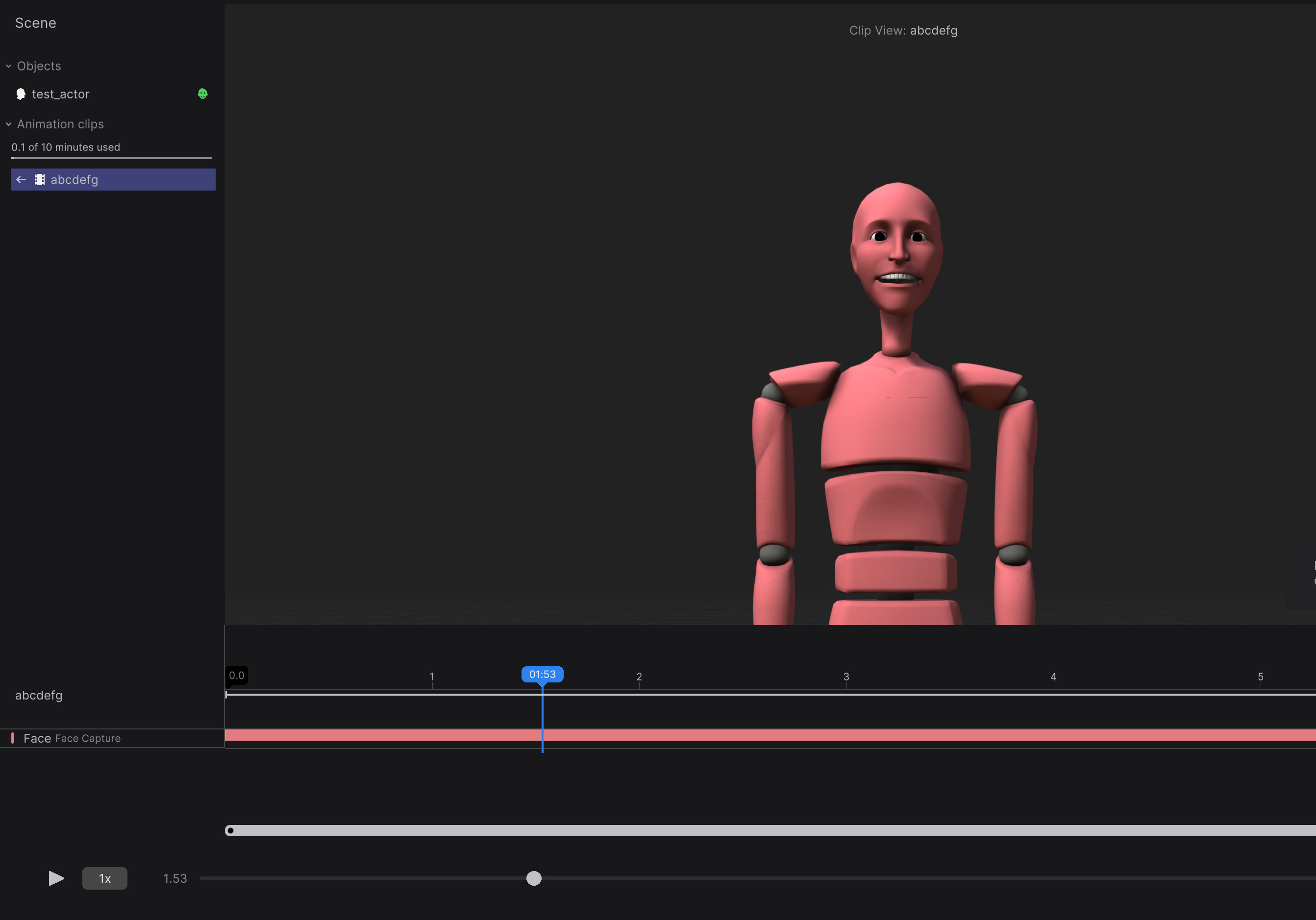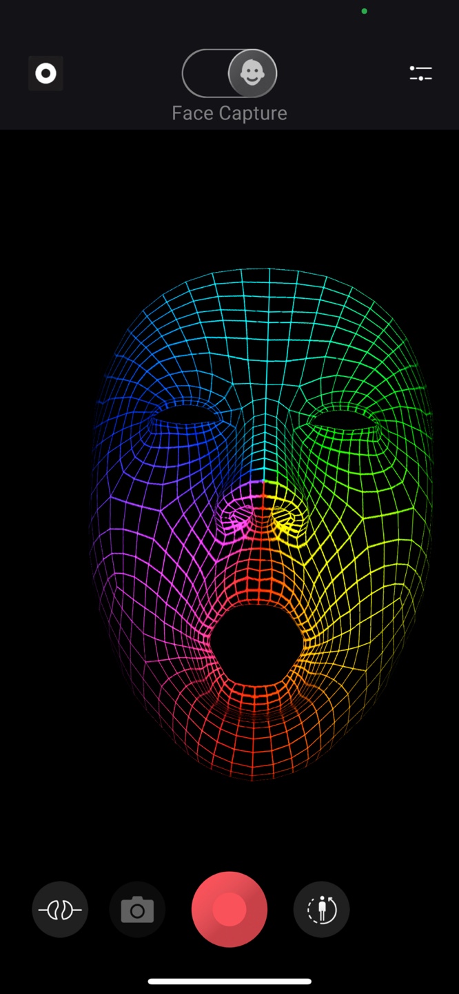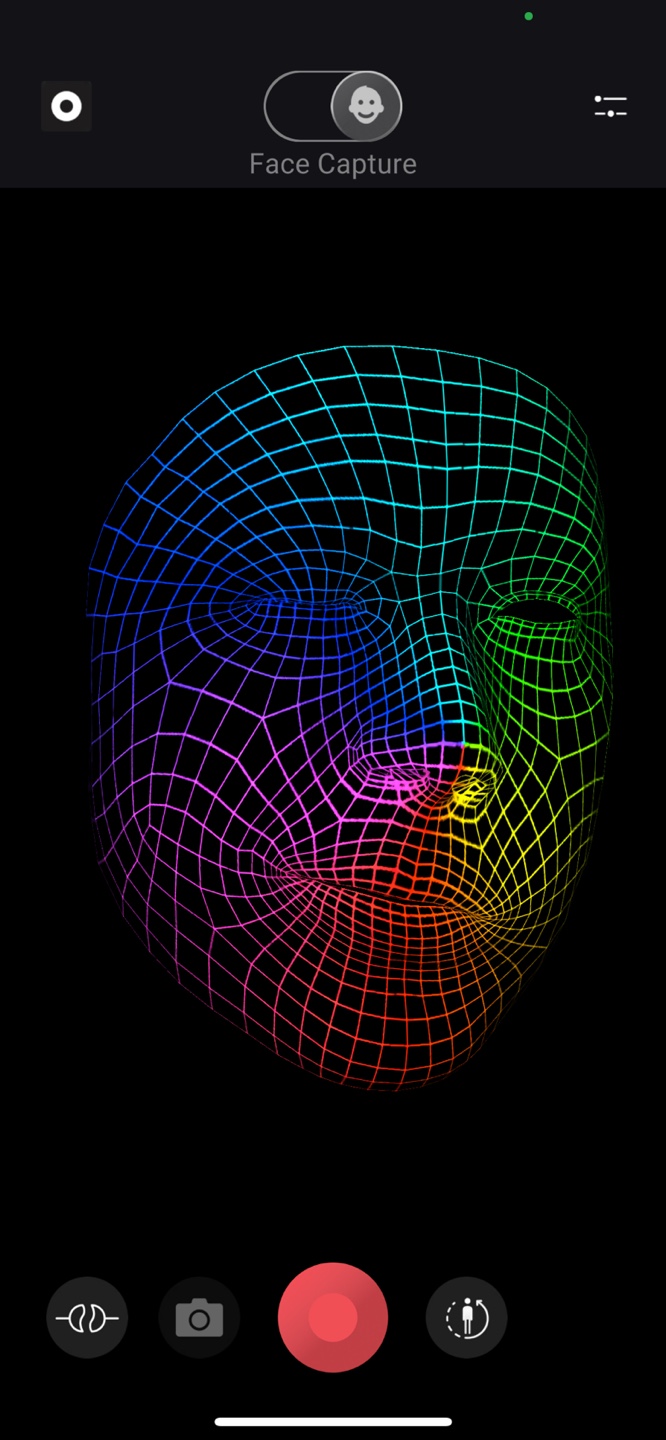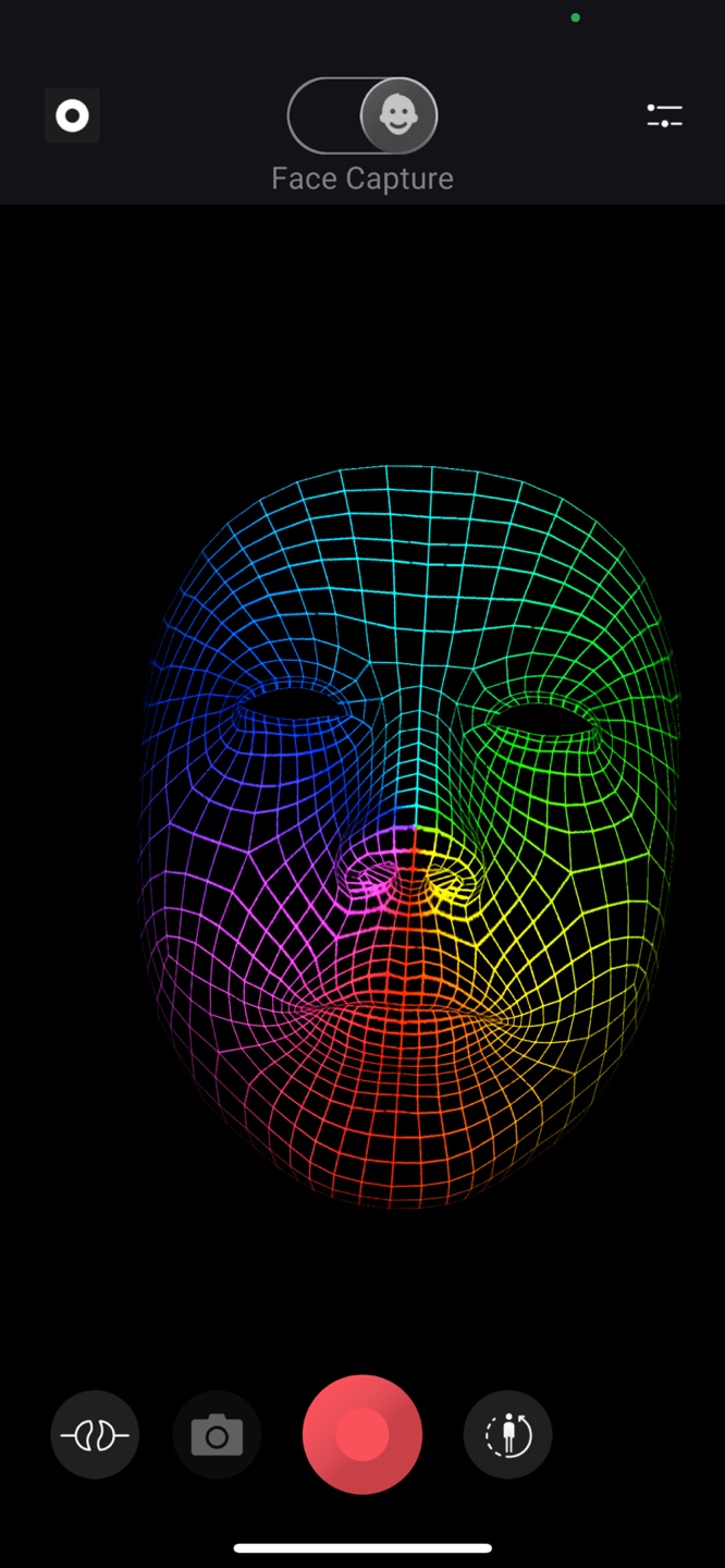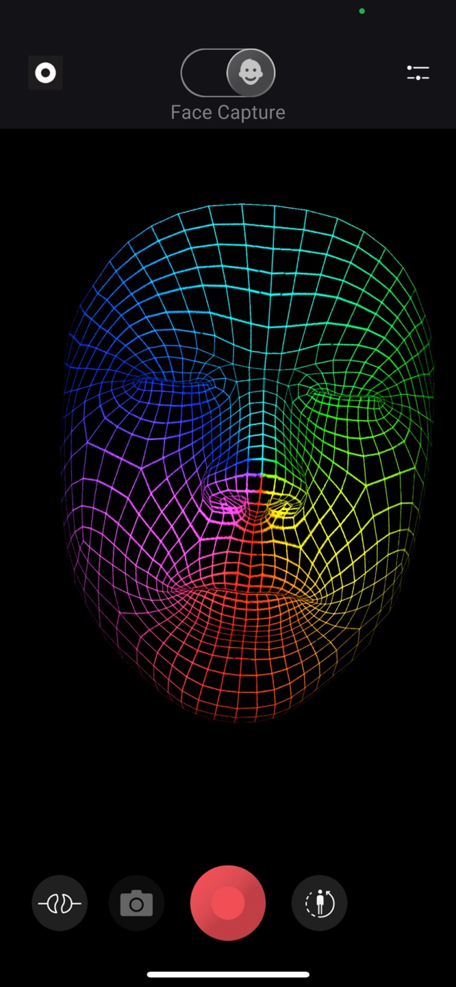 7)face capture 앱의 카메라에서 촬영하는 사용자의 얼굴 모션이 인식되는것을 확인할수있습니다.