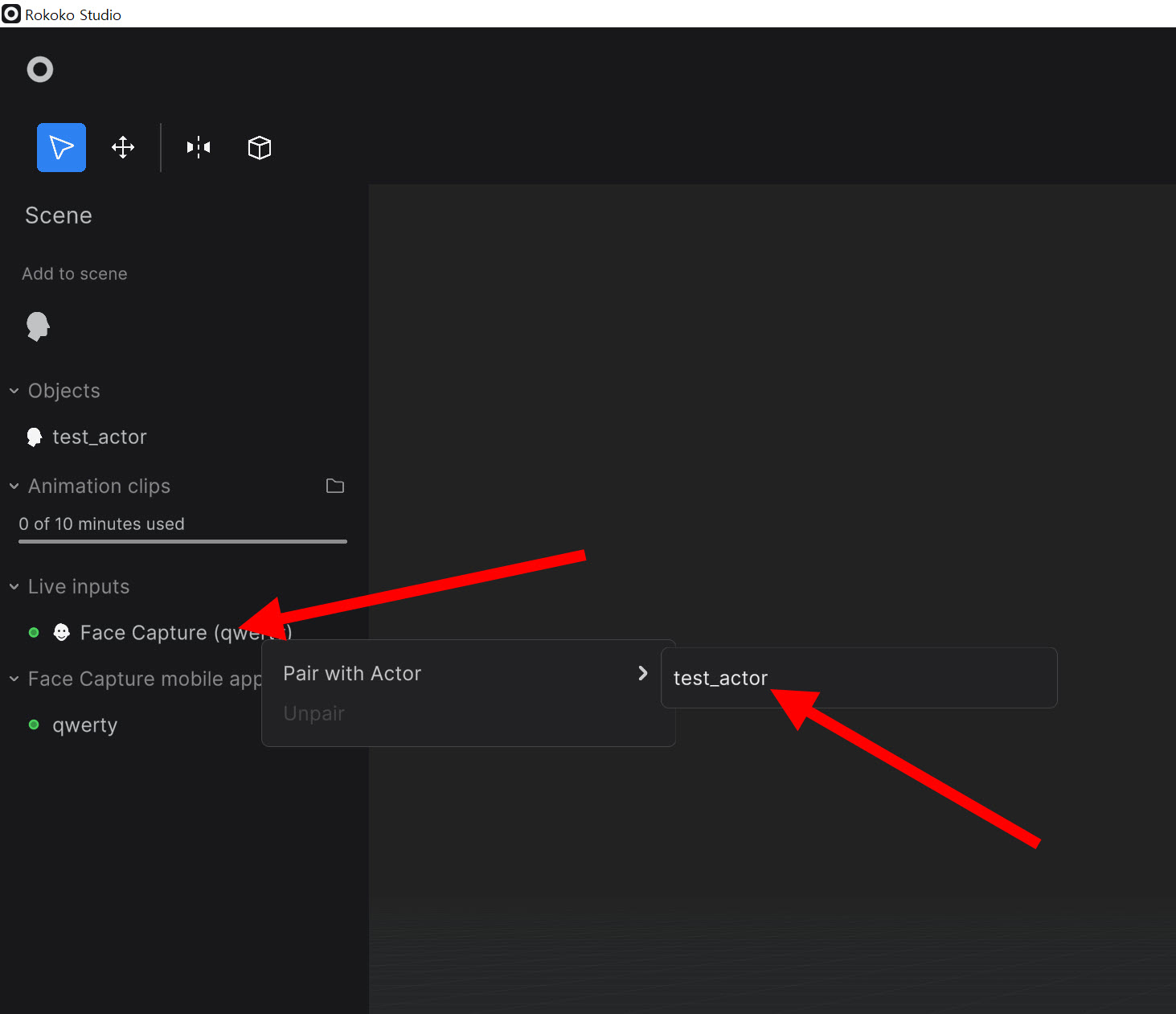 12)live inputs의 face capture를 선택 및 마우스 우클릭하고 pair with actor의 actor를 선택합니다.
