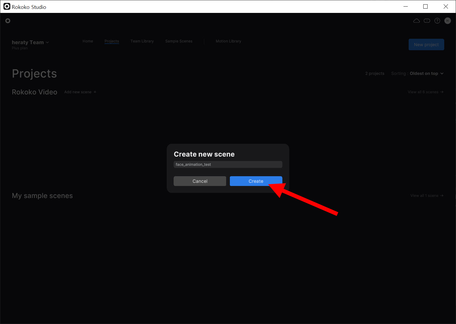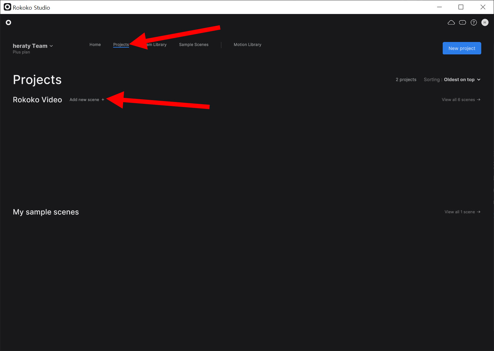2)rokoko studio의 프로젝트에서 새로운 씬을 추가합니다.
