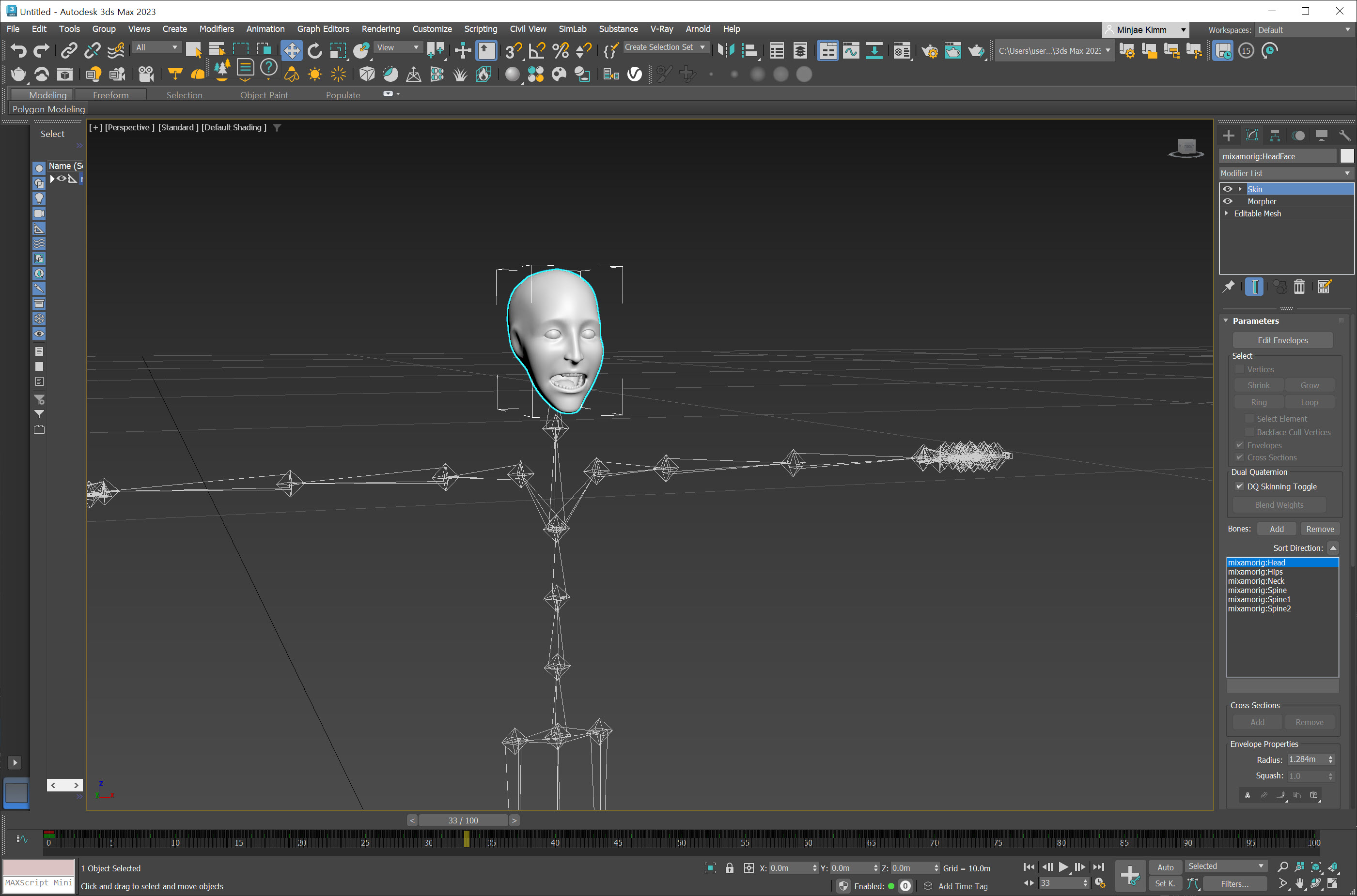 18)저장한 파일을 3D프로그램에서 가져오기하면 얼굴 애니메이션을 확인할수있습니다.