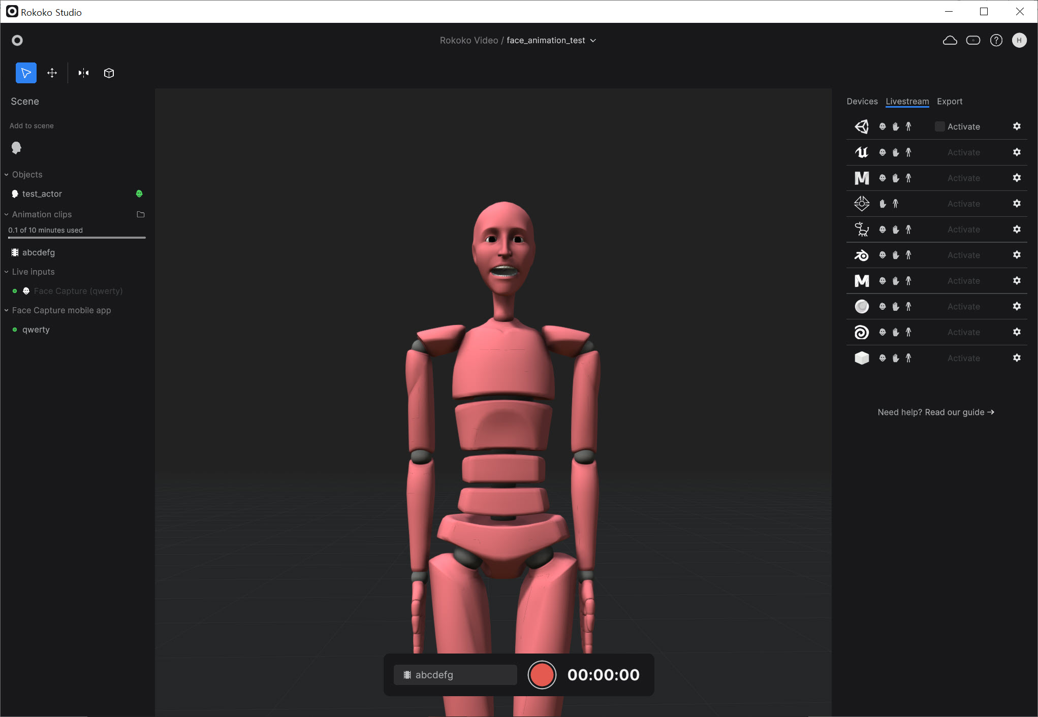 rokoko 스튜디오와 face capture 앱을 사용하여 실시간 얼굴 애니메이션 클립 만들기