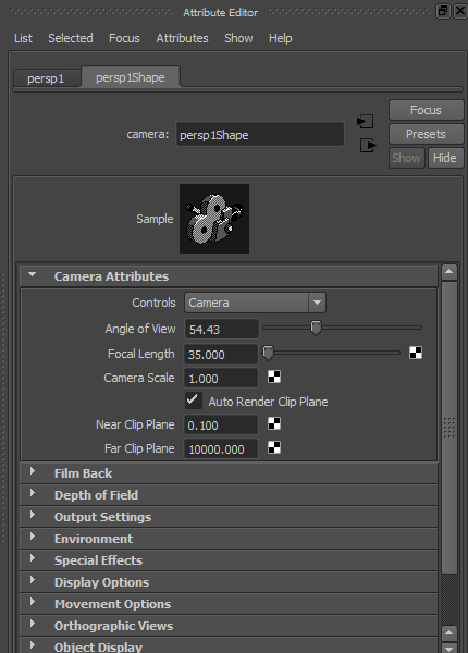 2)카메라를 선택하고 속성으로 이동합니다(camera attributes)