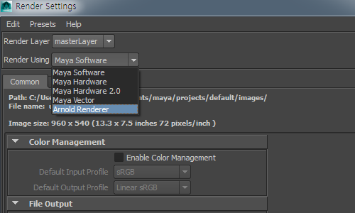 3)렌더 설정에서 렌더러를 arnold renderer로 변경합니다.