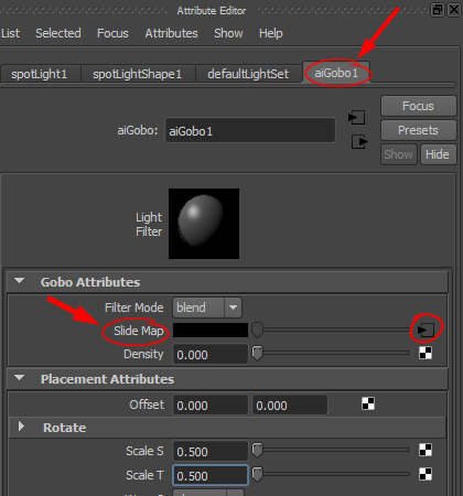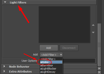 11)SpotlightShape의 light filters에서 aiGobo를 추가합니다.