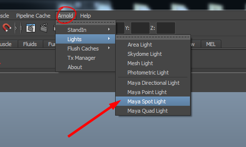 (Autodesk Maya 2014, 아놀드 렌더러와 스팟 라이트를 사용한 방법)