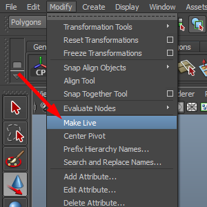 4)오브젝트를 선택하고 상단의 modify 메뉴에서 make live를 선택합니다.