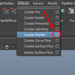 3)상단의 effects 메뉴에서 create shatter(옵션)을 선택합니다.