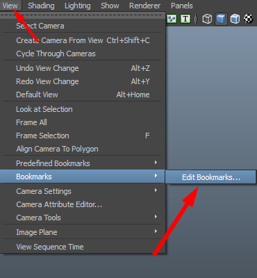2)뷰포트의 상단 view 메뉴에서 bookmarks의 edit bookmarks를 선택합니다.