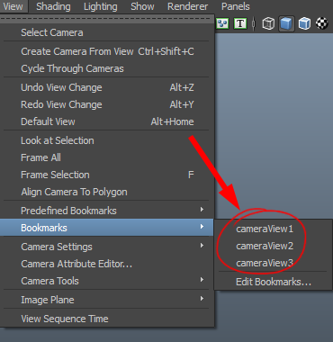 3D 마야(MAYA)에서 카메라 북마크 사용하기