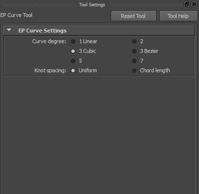 두 가지 도구를 사용하여 커브를 생성할수있습니다(CV Curve Tool, EP Curve Tool) 사용 방법의 차이가 있는 두가지 도구는 결과적으로 구성 요소가 동일한 커브를 생성합니다.
