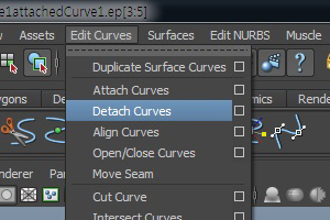 8)상단의 Edit Curves 메뉴에서 Detach Cruves를 선택합니다.