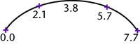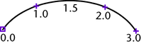 커브를 생성할때 EP(Edit point)의 Parameter 값은 시작점으로부터의 거리에 비례해서 증가합니다. 아래 커브에서 세 번째 포인트의 파라미터 값 3.8은 첫번째 포인트(0.0) 부터 두번째 포인트(2.1)까지 그리고 두번째 포인트(2.1)에서 세번째 포인트(3.8)까지 두 현의 합입니다.