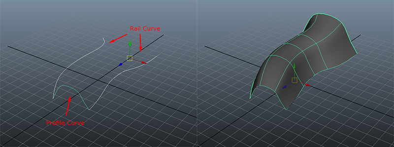 birail 1 - 2개의 rail curve와 1개의 profile curve가 필요합니다.