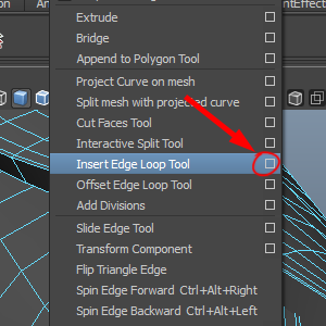 7)edit mesh 메뉴의 insert edge loop tool의 옵션을 선택합니다.