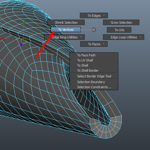 10)엣지루프로 추가한 엣지들을 선택하고 ctrl + 마우스 우클릭 메뉴에서 to vertices를 선택합니다.
