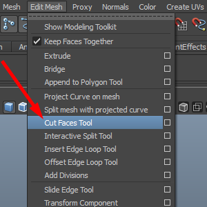 1)상단의 edit mesh 메뉴에서 cut faces tool을 선택합니다.