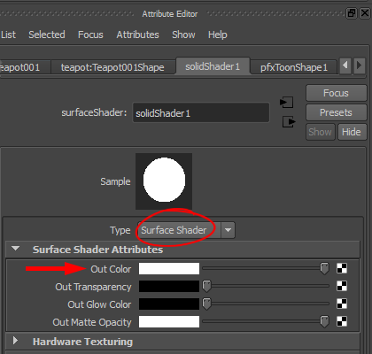 11)오브젝트에서 solidshader 노드를 확인할수있습니다. surface shader attributes의 out color에서 기본 흰색으로 설정되어있는것을 확인할수있습니다.