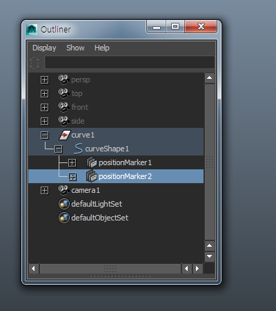 12)curveshape의 하위에서 positionmarker2 노드를 선택합니다.