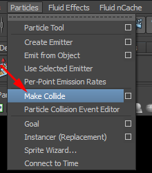 15)상단의 particles메뉴에서 make collide를 선택합니다.