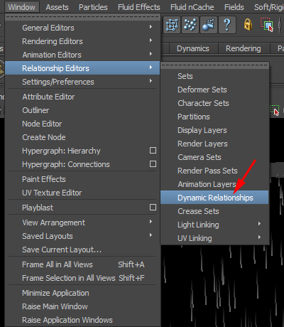 25)상단의 window 메뉴에서 relationsship editors의 dynamic relationships으로 이동합니다.