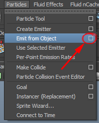 4)plane2를 선택하고 상단의 particles 메뉴에서 emit from object의 옵션을 선택합니다.