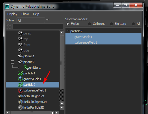22)particle2 오브젝트를 선택하고 particleshape2 노드로 이동합니다.