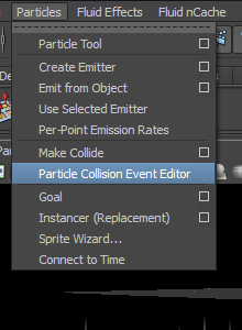 17)상단의 particles 메뉴에서 particle collision event editor를 선택합니다.