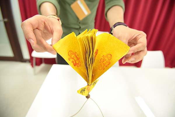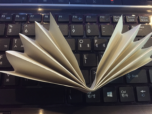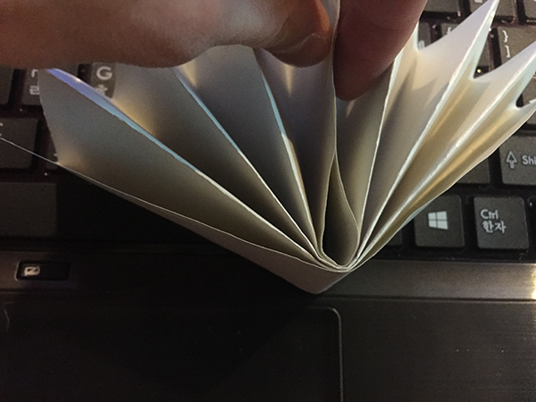 1)종이 접기를 하여 레퍼런스와 동일한 형태를 제작합니다.