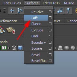 9)상단의 surfaces 메뉴에서 loft를 선택합니다.