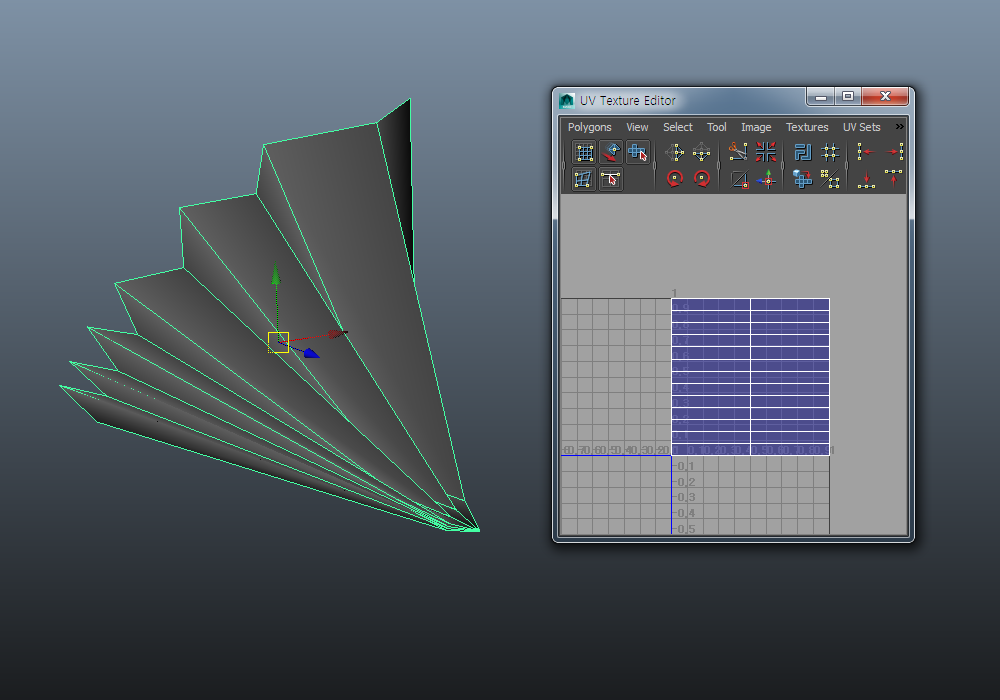 부채 모양의 프랍(prop)을 모델링하는 방법(NURBS 의 loft를 이용한 방법)