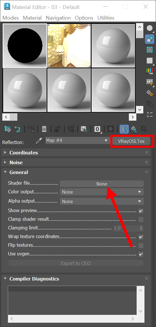 5)VRayOSLTex의 general에서 shader file의 none을 클릭합니다.