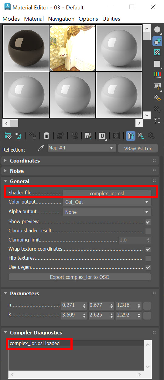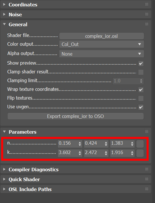 10)VRayOSLTex에서 n, k를 입력합니다.