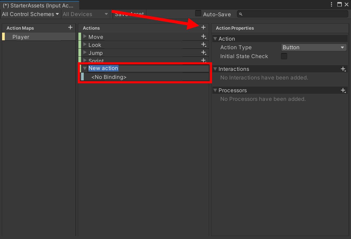 11)input action asset에서 새로운 액션을 추가합니다.
