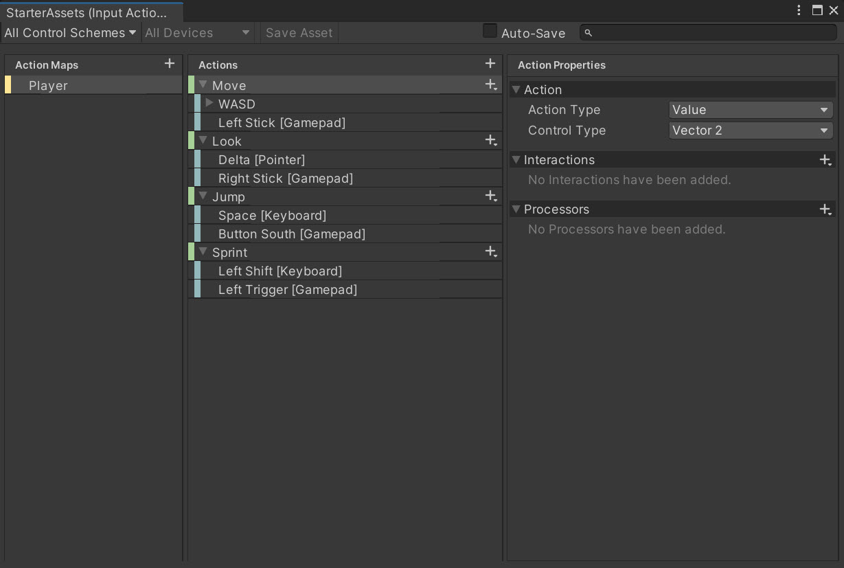 5)PlayerInput 컴포넌트의 Actions에서 참조하는 Input Action Asset으로 이동합니다.