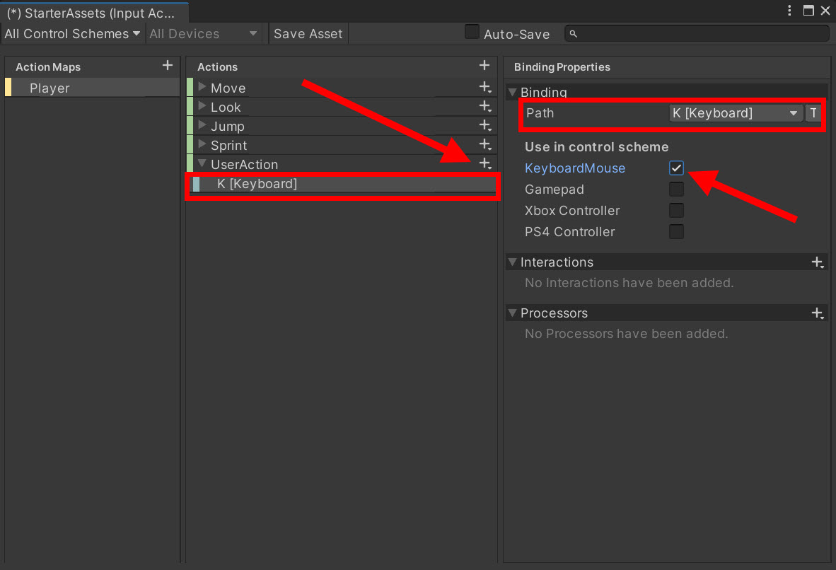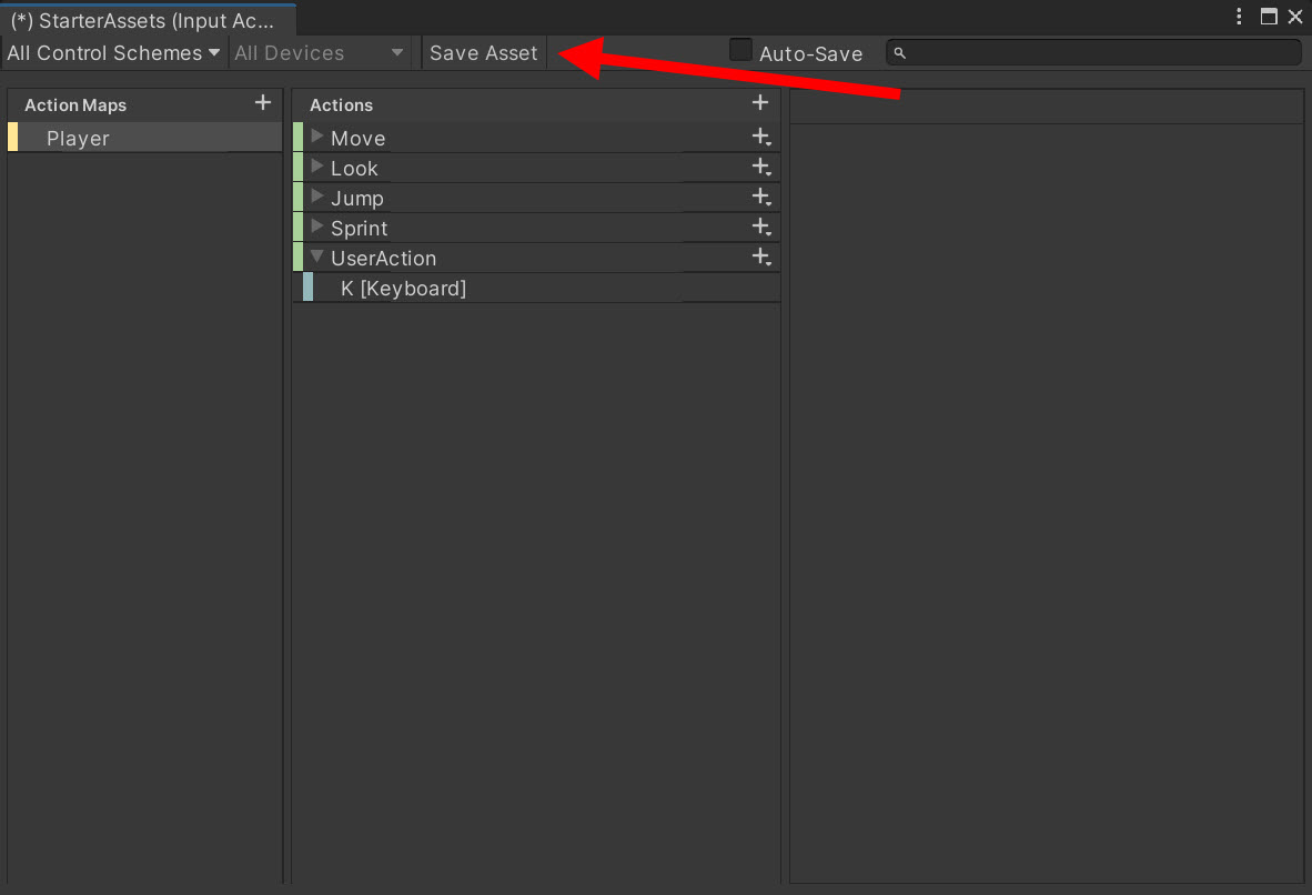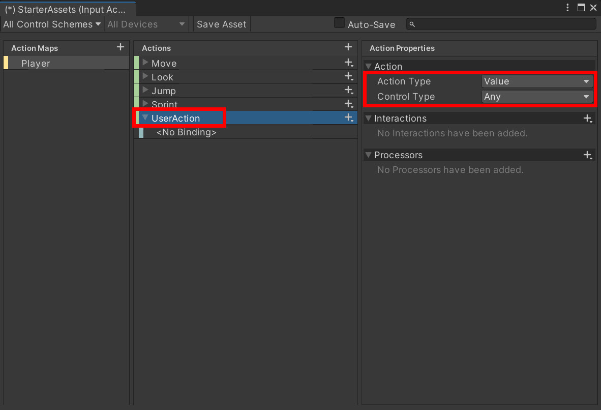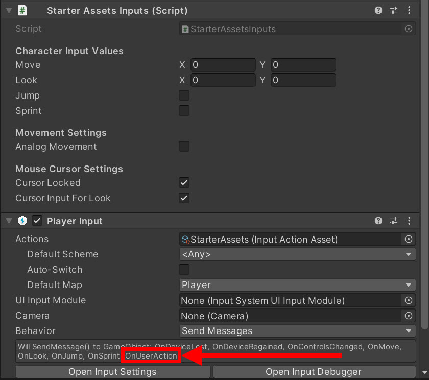 15)PlayerInput 컴포넌트에서 새로운 액션에 대한 함수가 추가된것을 확인할수있습니다(OnUserAction)