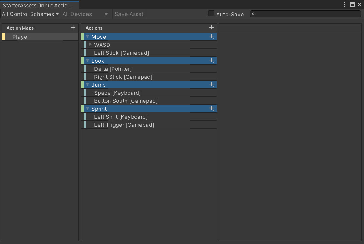 6)플레이어의 액션(Actions)이 설정되어있는것을 확인할수있습니다.