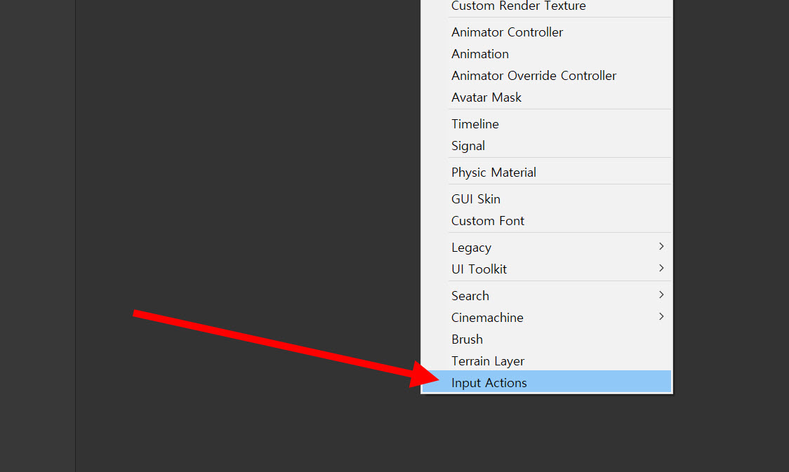 1)프로젝트에서 새로운 input actions 에셋을 생성합니다.