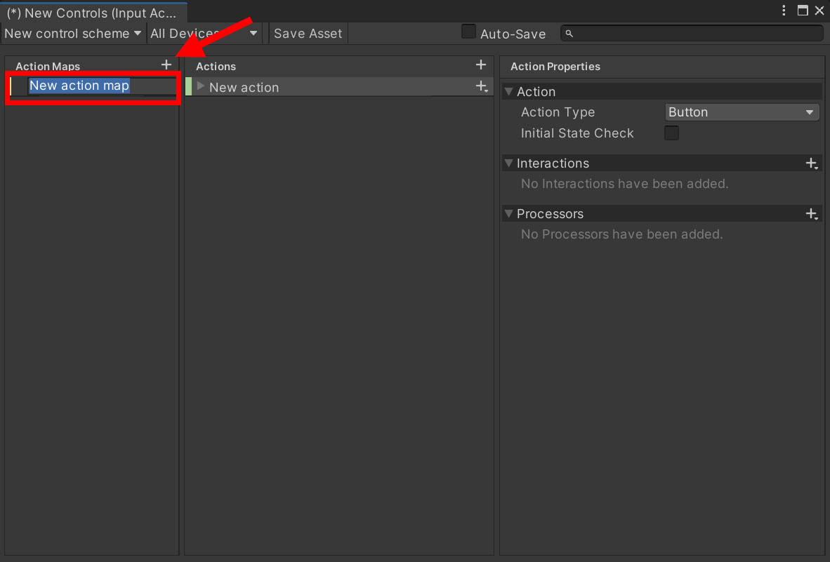 6)action maps의 +버튼을 클릭하여 새로운 액션 맵을 추가합니다.