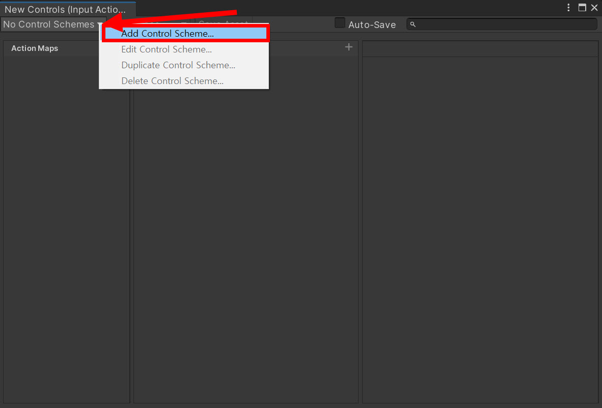 3)좌측 상단에서 add control scheme를 선택합니다.